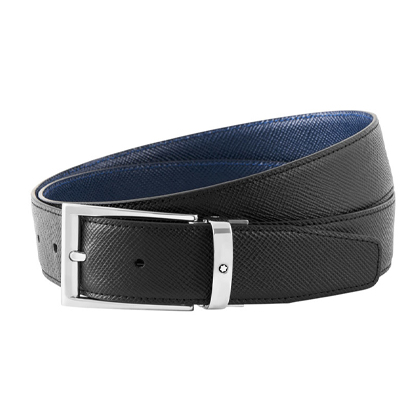 Двусторонний ремень из кожи черного и синего цвета 35 мм от магазина премиальных ручек Premium Pens в Саранске.